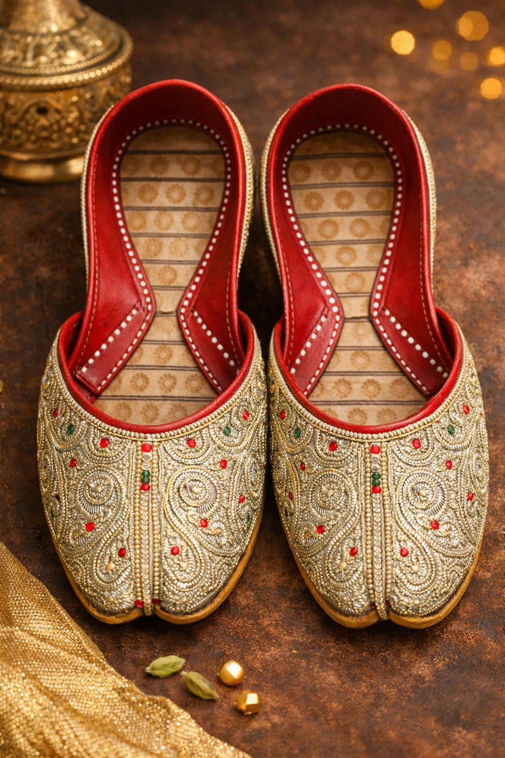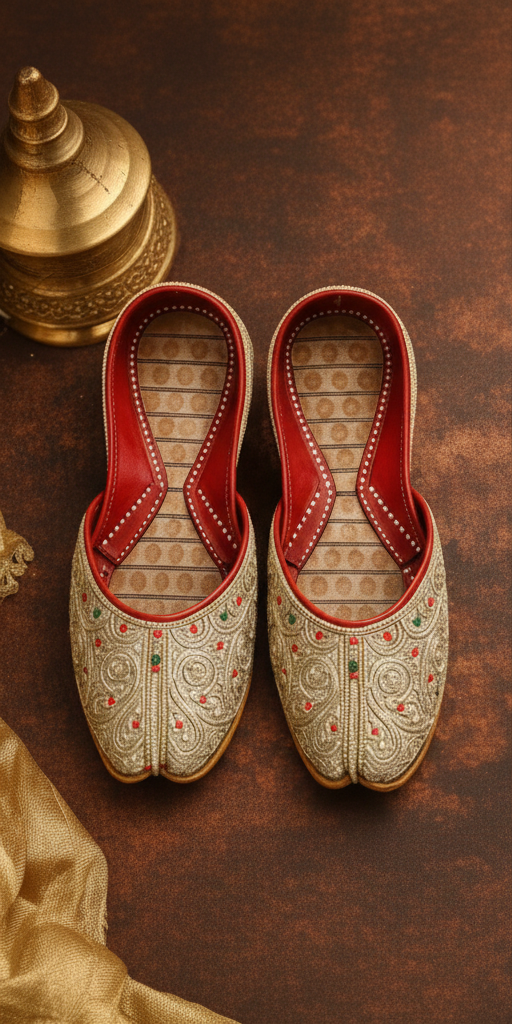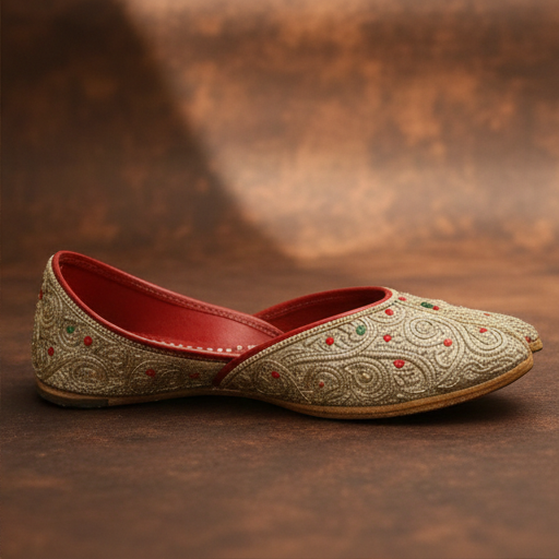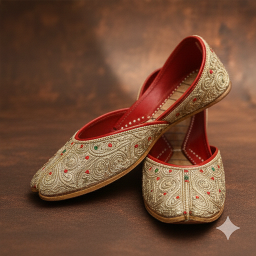 The soft leather construction and comfortable inner lining ensure ease of wear, while the traditional closed-toe silhouette maintains its cultural authenticity. Perfect for festive occasions, weddings, and everyday ethnic styling, this jutti reflects fine artisan craftsmanship and timeless design.